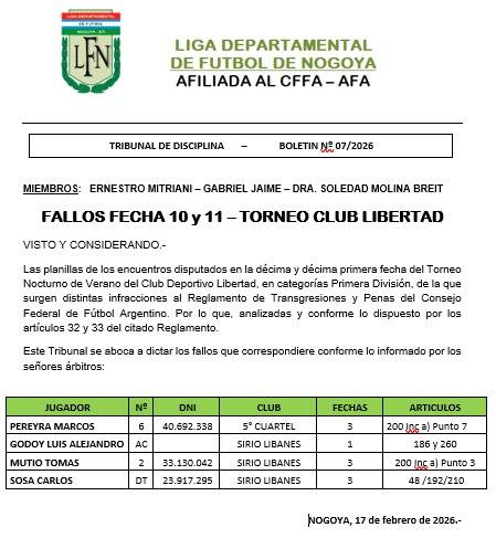 BOLETIN N° 7 - TRIBUNAL DE DISCIPLINA