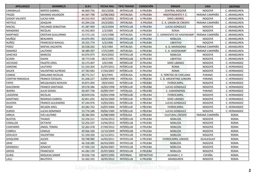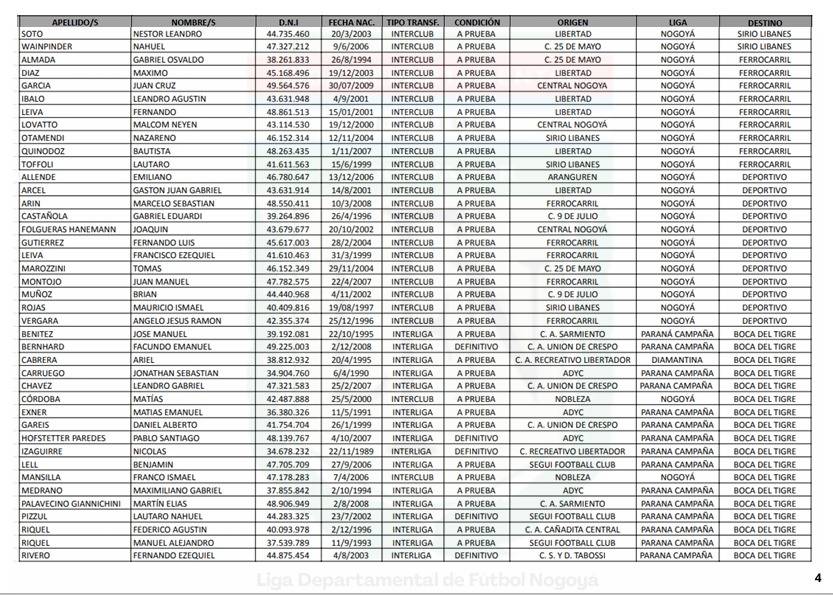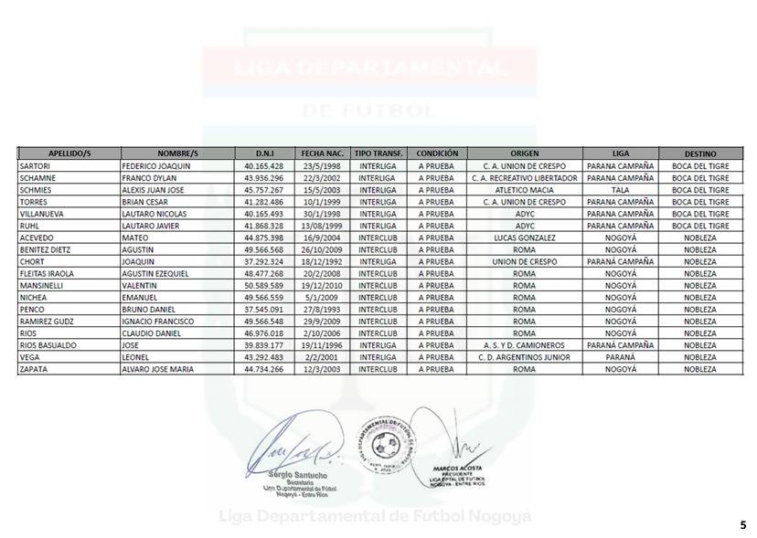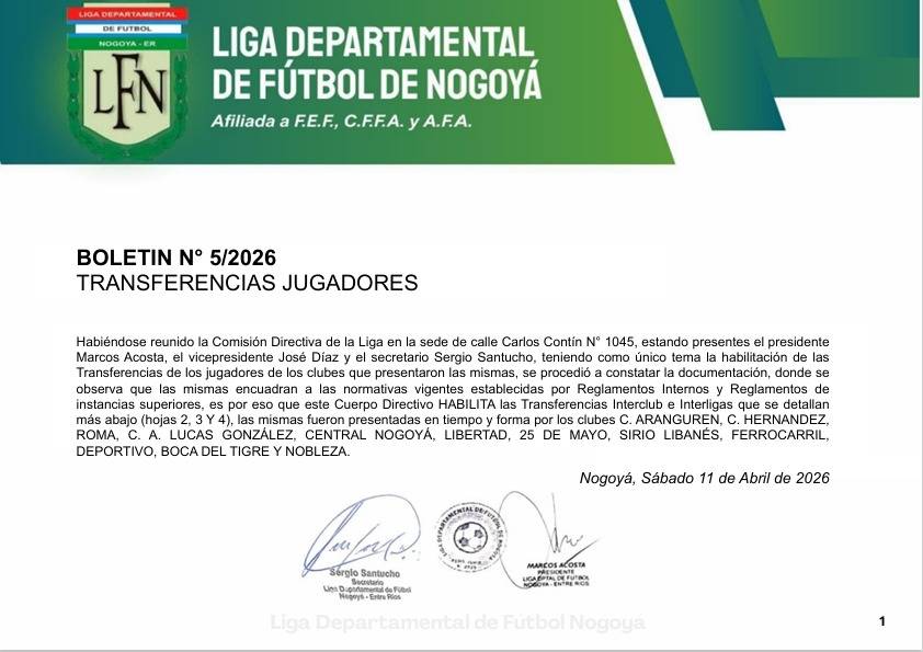 BOLETIN N° 5/2026 - TANSFERENCIAS JUGADORES